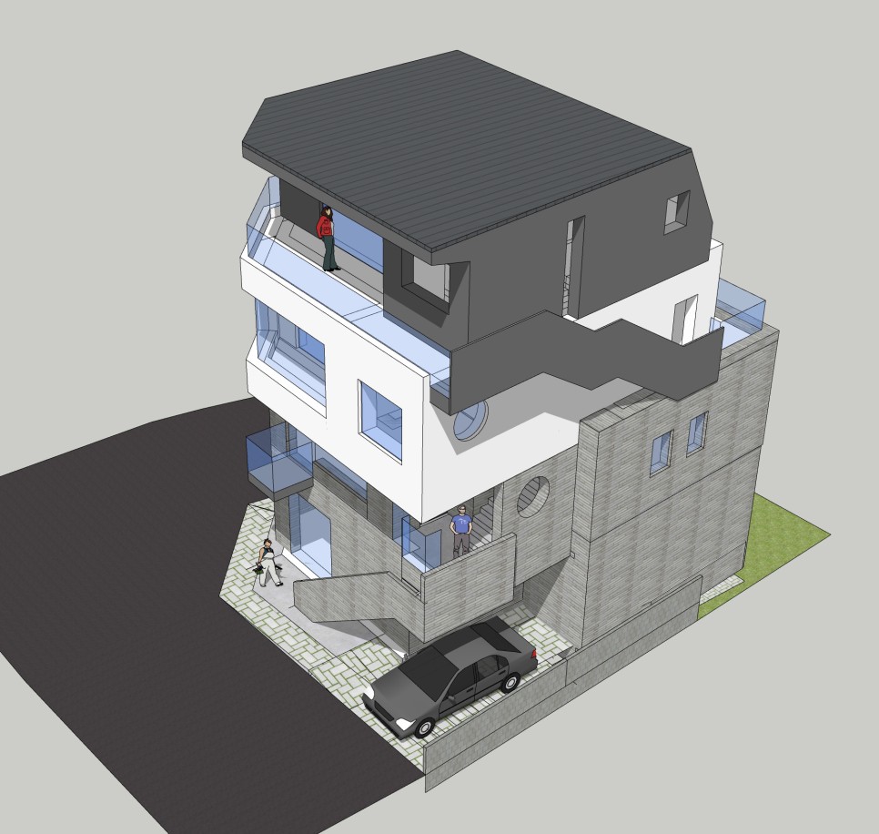 1년을 넘게 작업했던 고덕동이 시작되었습니다. 중간에 취소에 변경까지 여러일들이 있었는데 겨우 다시 살아났습니다.첫삽을 뜨기까지는 또 어떤일이 일어날지 모르니..약간은 긴장하며 지켜보고 있습니다. 1-2층은 근생 3-4층은 단독주택입니다. 책을 좋아하는 남편과 정원 가꾸기를 좋아하는 아내가 함께 살 집입니다. 초등학교 앞에 있기 때문에 아이들의 추억에 좋은 기억으로 남는 건물이 되었으면 좋겠습니다.