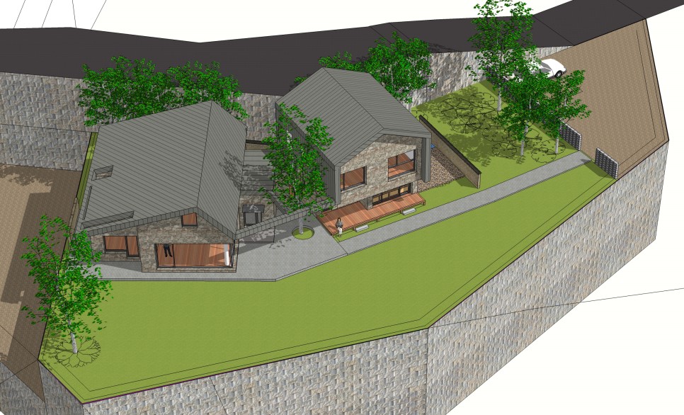 부부와 2자녀가 살 주택으로 계획했다. 큰 돌공장에 다니는 사람이었기 때문에 외장에 돌을 맘껏 쓰기로 했다. ....몇번의 미팅을 끝으로 연락이 안된다.... 음음. 아직도 이유는 모른다 ㅎㅎㅎ