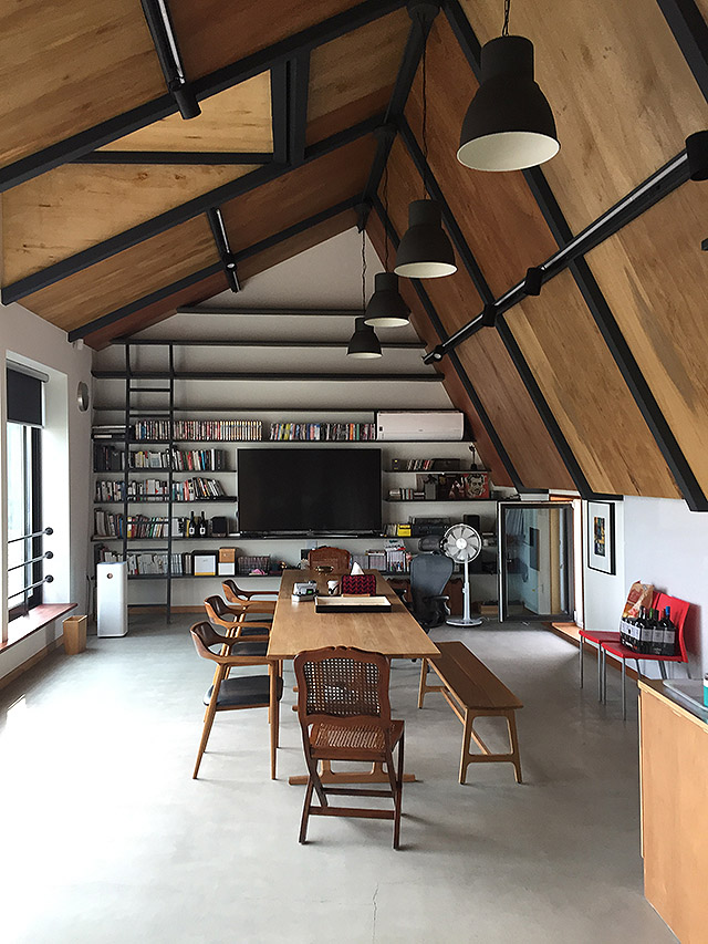 책꽂이에 책들이 들어왔고 멋진 책상이 놓였다. 너무 밝아서 걱정했던 천장 합판도 이제 좋은 나무색으로 변하고 있었다. 게다가......공간에서 일을 하고 있다. 잘 사용되고 있는 공간은 아름답다.