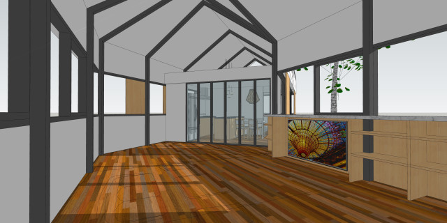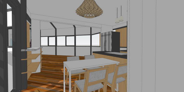 구성은 단순하다. 외부로 구조기둥과 벽이 둘러지고 창은 수평으로 책상높이 로 연속된다.나머지 내부 벽은 가능하면 가변식을 사용한다.(밥먹을 때 고양이와 분리가 필요) 주변 풍경을 끌어들이고 땅에 알맞는 집이 되었으면 좋겠다. 풀어야할 숙제가 많지만....